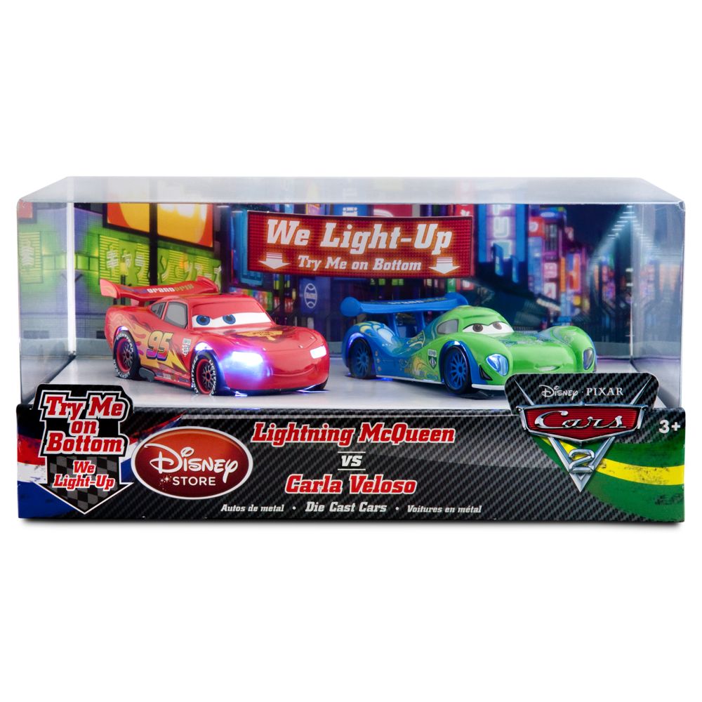 Bộ Lightning McQueen Pit Crew okie, còn bộ lightning mcqueen va carlo veloso hãng hết hàng rồi em nhé, mấy món sale này nhanh hết lắm. Loại xe hơi light-up em chọn 1 trong 2 bộ còn lại thì okie.